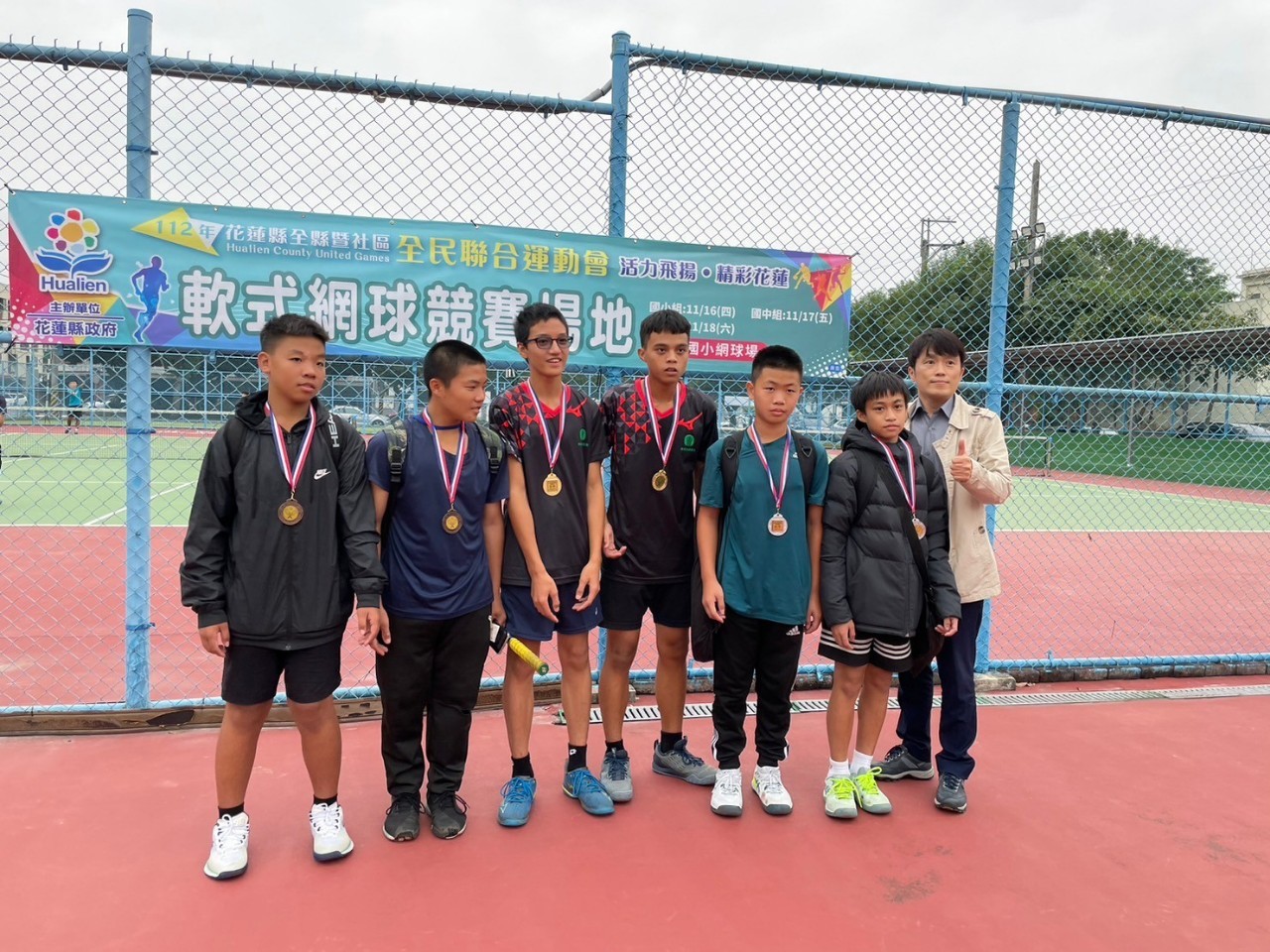 • 賀!【114 年花蓮縣縣長盃軟式網球錦標賽】四年級男子雙打:冠軍(甘澤融)、亞軍(余武勳、林晨晰)、季軍(陳柏聿、吳怡恩)